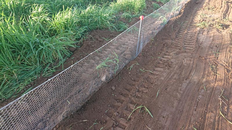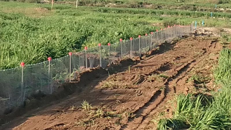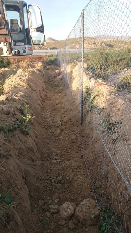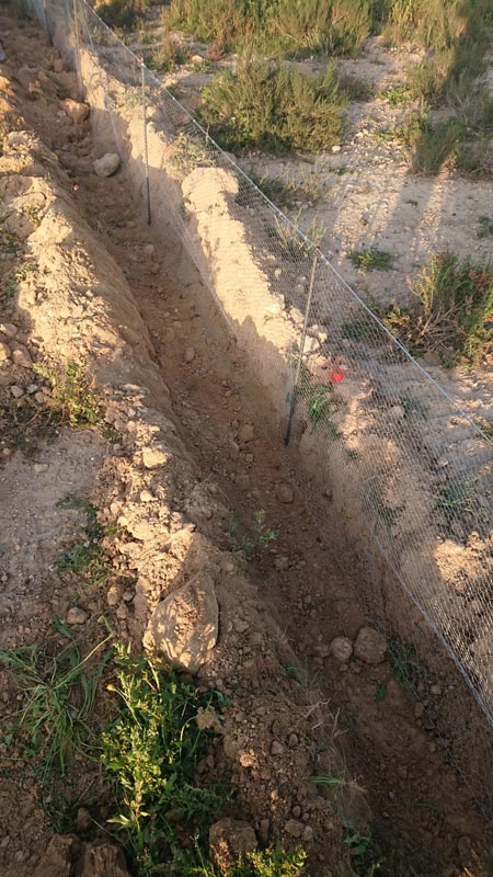 Cerramiento para protección de tortuga mora en tramo de AVE en Almería. Malla triple torsión de 19 mm.