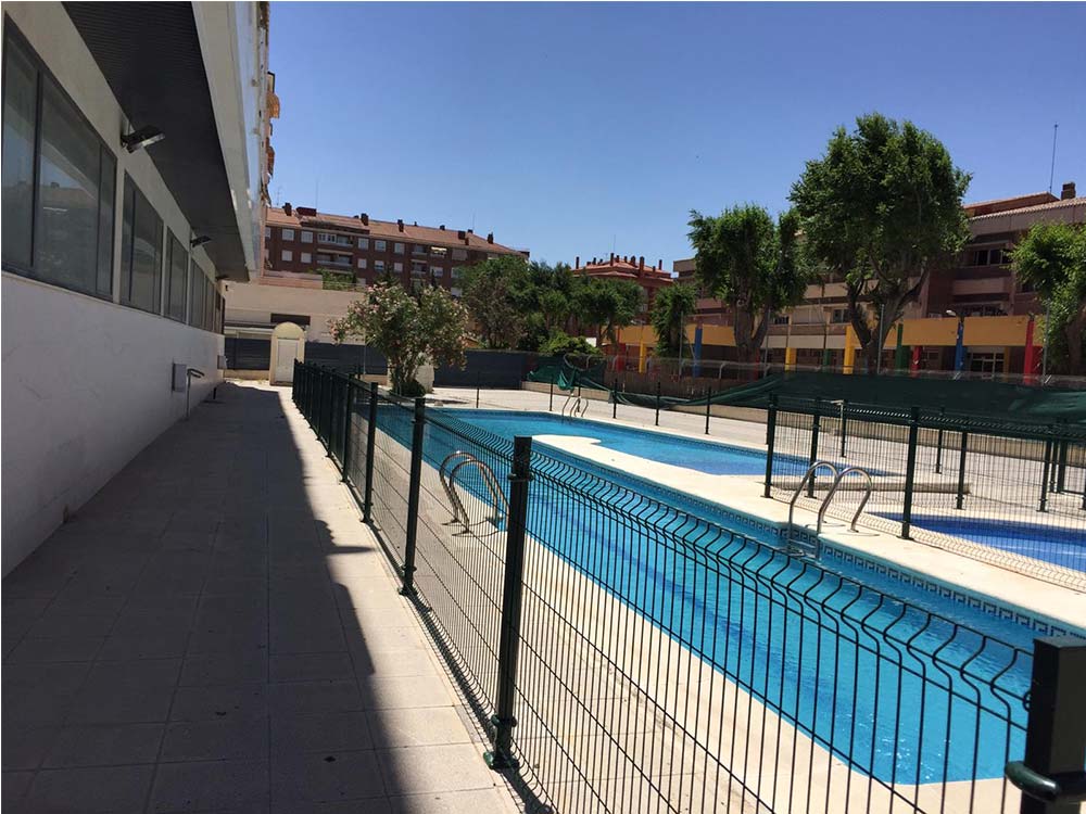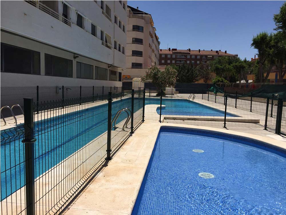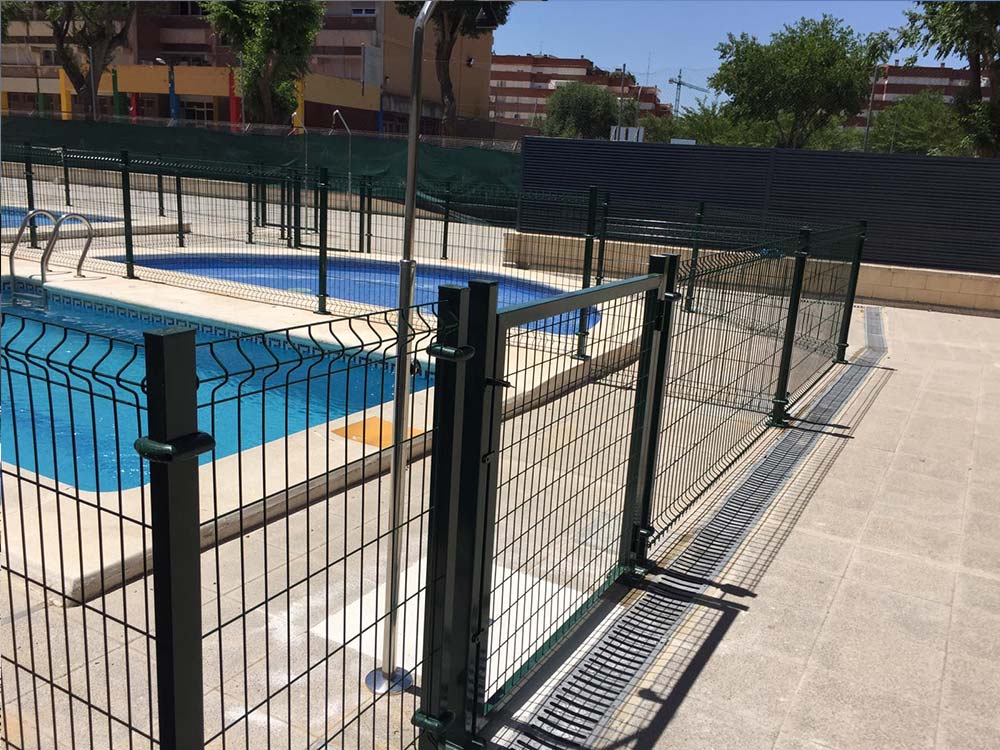 Instalación de Malla plegada hércules verde de 1.20 mt de altura en comunidad de vecinos de Albacete. Este tipo de valla cumple con las condiciones exigidas por sanidad para piscinas públicas.
