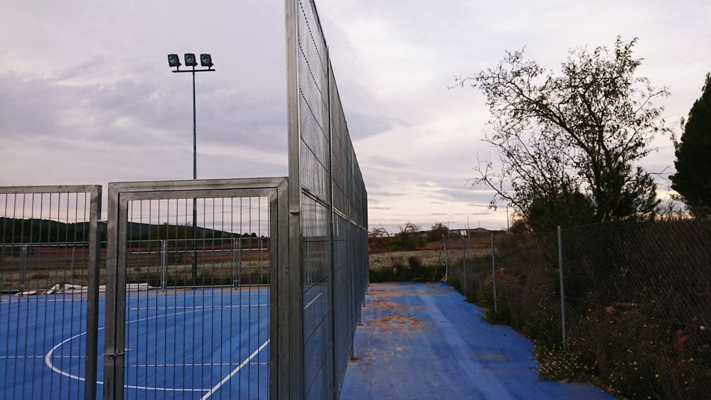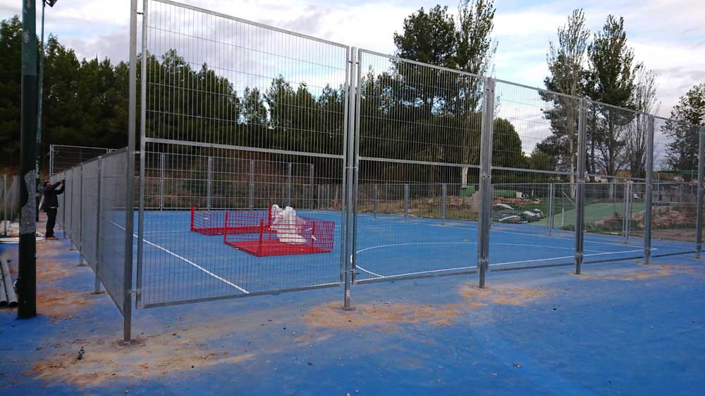 Instalación de paneles de malla electrosoldada con marcos en zona polideportiva en El Rebollar (Valencia).