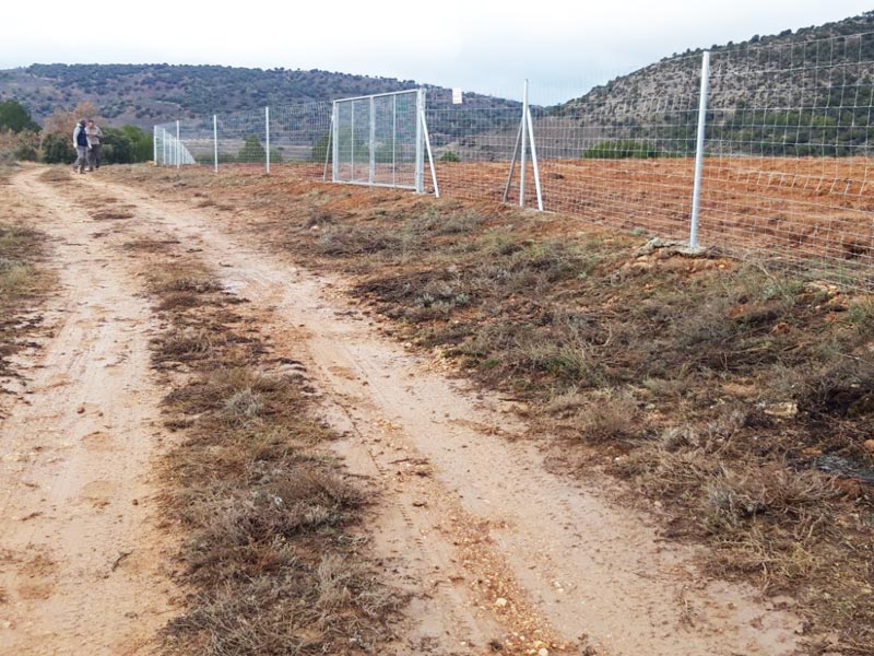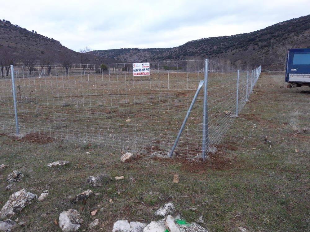 Instalación de vallado con malla cinegética en finca agrícola de Encinas Trufa en Cuenca, Castilla-La Mancha.