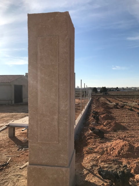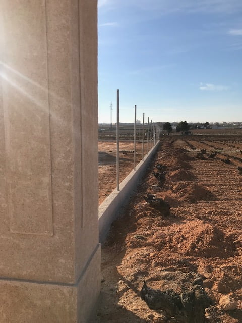 Vallado con malla simple torsión sobre muro de bloques en Tomelloso.